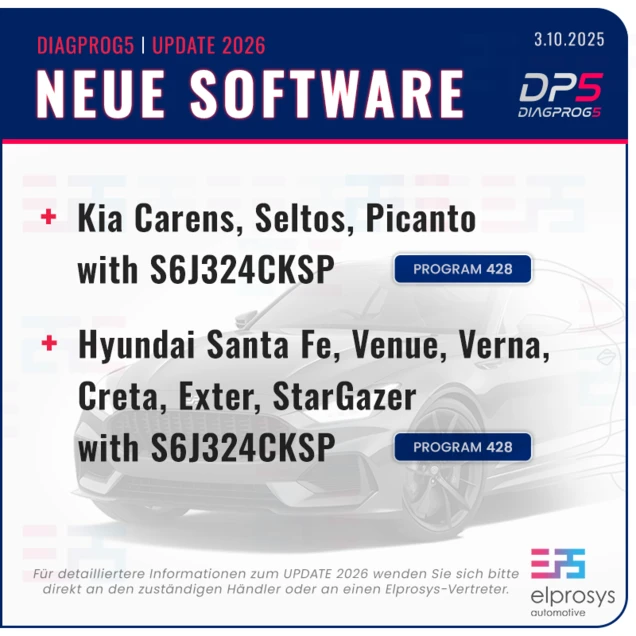 - Hyundai Santa Fe, Venue, Verna, Creta, Exter, StarGazer with S6J324CKSP - programming/testing (C22+C21) - Programnummer 428